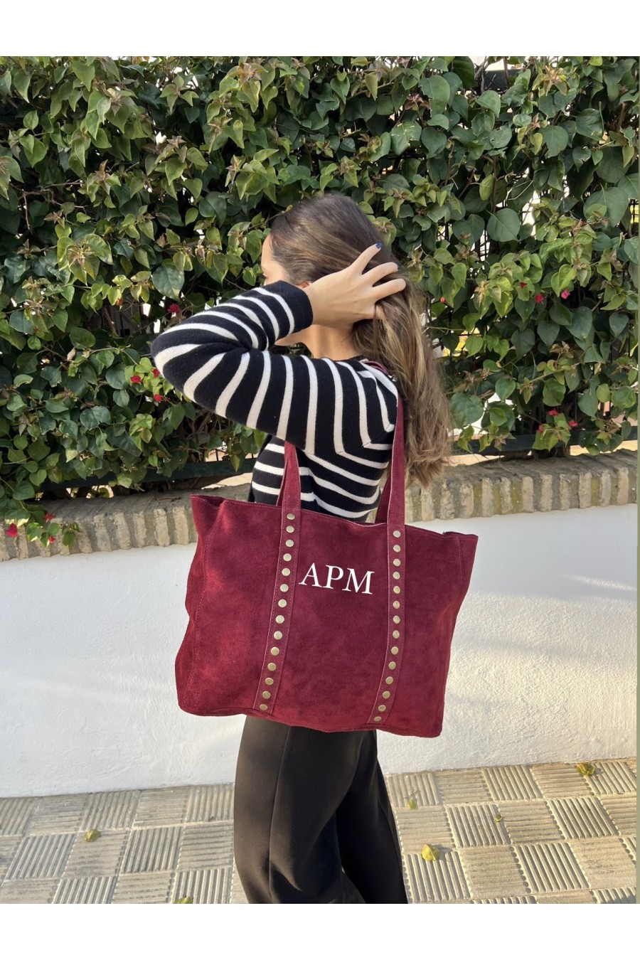 Bolso leather tachuelas burdeos