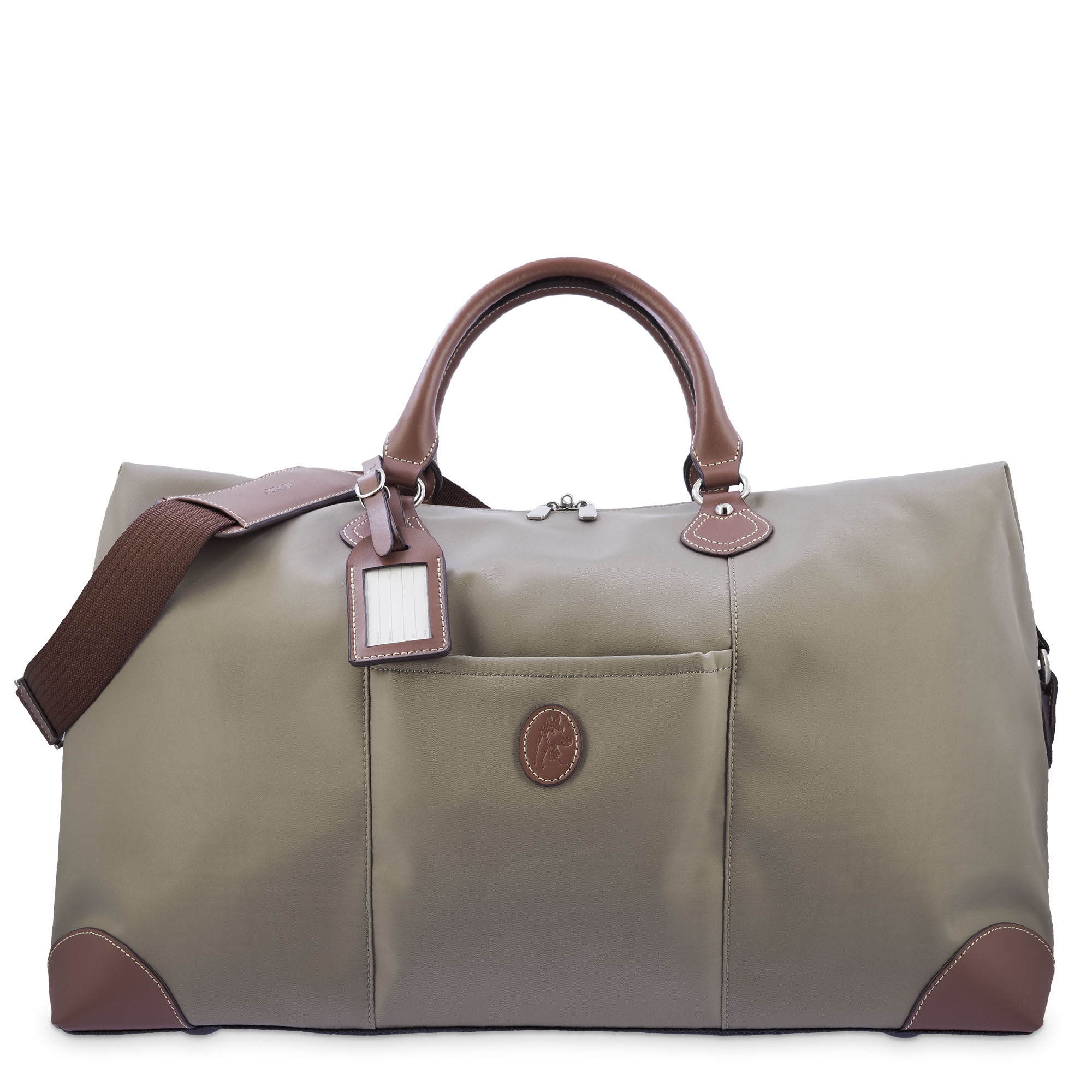Bolso de viaje unisex en lona taupe y piel vacuno color cuero Paris
