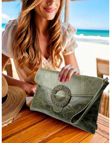 BOLSOS PIEL VERDES SECO CARTERAS PARA DIA Y NOCHE | BOLSOS MUJER