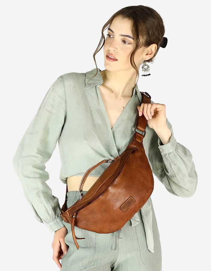TORINO™ Riñonera grande de mujer de piel con cremallera.